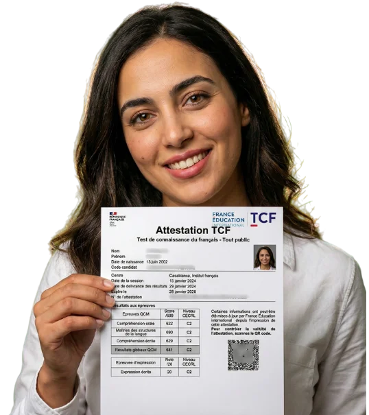 Casablanca, MarocJ'ai préparé mon TCF en seulement 3 semaines avec le Pack Premium. Les tests d'entraînement sont identiques au format officiel. Je recommande à 100%.